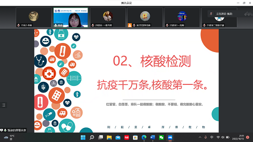 最后,采购管理专业学生第一、二党支部向同学们介绍了关于学生如何做好自身防控方面的注意事项,并强调希望大家能够在特殊的时期理解和配合,认识到校园疫情防控从严从紧的特殊性和重要性。努力克服由于疫情带来的学习、生活上的困难,杜绝厌倦情绪和懈怠心理,充分发挥学生自我教育、自我管理、自我服务作用,保证线上于线下相结合教学的高质量完成,呼吁大家坚持健康打卡、三天一检核酸并按期接种疫苗。