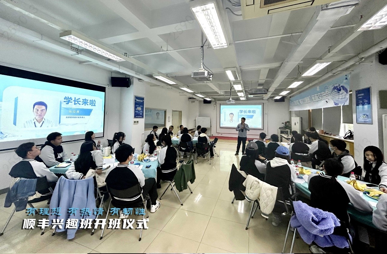 上午8:30,兴趣班同学们乘坐公司大巴车抵达北京顺丰速运总部后,公司人力资源部门李航、董笙静等为同学们分发印有顺丰专属logo的班服。同学们在换上崭新的班服后,沟通见面会也就此拉开序幕。