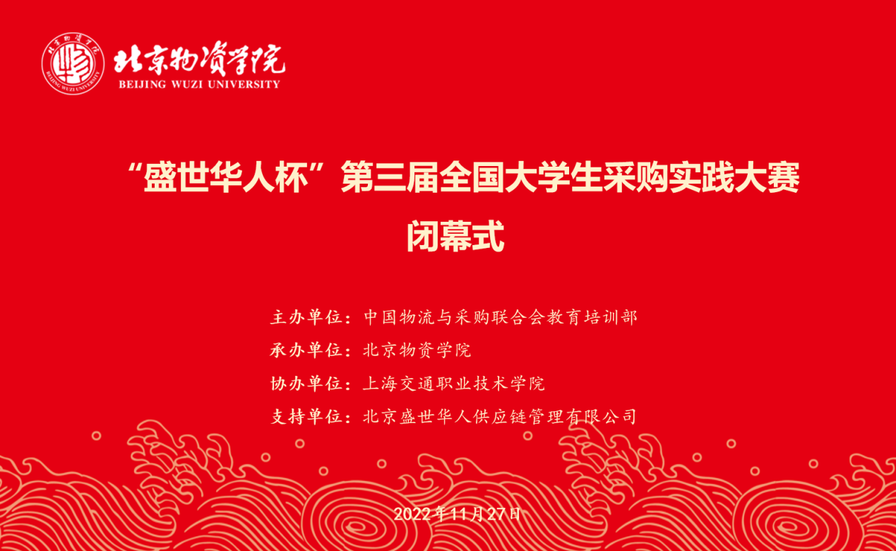 2022年11月27日,“盛世华人杯”第三届全国大学生采购实践大赛通过线上腾讯会议的方式举办了闭幕式。会议由尤物视频