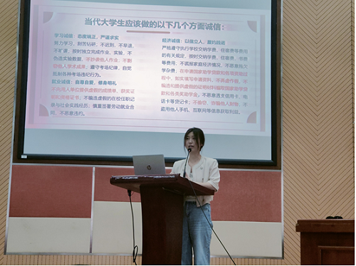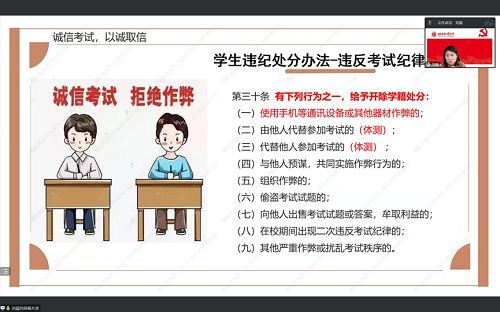 本次大思政课从诚信教育、安全教育、廉洁教育等几个方面入手,引导同学们在接下来的期末考试中自觉遵守考试纪律、杜绝各种形式的作弊,同时结合真实案例提醒同学们谨防电信诈骗、增强安全意识、注意假期出行安全、提升自我保护能力。