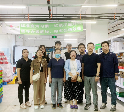 调研伊始,叮咚买菜负责人公共事务副总裁安琪对各位老师以及学生的到来表示热烈欢迎,并为其讲述了叮咚买菜的运营现状,运营模式,分布区域以及配送方式等。随后在安琪副总裁的引导下,老师及学生进入叮咚买菜的前置仓进行参观,分别对常温区、冷藏区和冷冻区进行细致观摩,同时对前置仓模式下店员的拣选过程以及骑手的配送过程进行了详细的了解。安琪副总裁还为老师以及学生展示叮咚买菜的溯源技术,并向其介绍叮咚买菜的自有品牌和全新产品,推动老师和学生进一步了解企业的技术和产品发展。