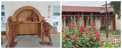 紧接着,实践团队在村干部的引领下参观了古城墙遗址。怀安作为边塞之地,历来备受兵家争夺,村中的古城墙更是明代遗留下来的珍贵古建筑。其中一户人家将城墙作为庭院围墙,房屋的历史悠久,经过装修后呈现出独特的样貌。随后,团队成员在国办派驻北庄堡村驻村第一书记王德利、北庄堡村党支部副书记武有林的带领下,来到北庄堡村智慧党建活动室。武有林副书记向实践团队介绍了北庄堡村的悠久历史、脱贫攻坚成就和乡村振兴成果。活动室中央还设有展示村庄产业发展的模拟沙盘和3D立体智慧党建投影设备。通过沙盘展示,团队成员们了解到北庄堡村的产业设施、基础设施和公共服务设施。借助投影和互动设备,团队成员深刻感受到了脱贫攻坚对北庄堡村产生的巨大改变。最后,实践团队参观了北庄堡村特色碹窑民宿。一进入民宿,就被院内美丽繁盛的花草和精致的民宿建筑所吸引。民宿内部环境舒适宜人,只需进入屋内就能在炎炎夏日感到凉爽。