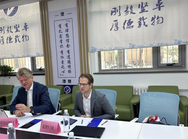 谢弗教授提出了新的交换生课程设置方案,双方就交换生课程内容、交换时间、交换形式、学分认定、双学位设置进行了探讨,拟定交换生培养计划。双方互拿双学位作为一个新的项目。