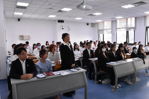 团委学生会副部长代表张远婷、郭子怡同学发言。张远婷同学提出要有严谨认真的工作态度,且要持续保持工作热情,要以端正的态度和饱满的热情去完成好收到的每一项任务,尽全力做好本职工作,需要我们所有人的共同努力,才能取得更好的成绩。郭子怡同学在发言中提出,在新学期开始要想做好学生会的工作要用心,要有责任心,要有热心,要有信心。从他们发言中可以感受到两位同学立足当下、满怀热情、尽职尽责的工作态度,也让我们看到了新一届副部长们的能力,对他们充满信心、充满期望。
