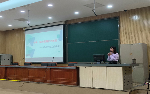 最后,各党支部书记强调了假期安全注意事项。各党支部书记提醒,此次中秋国庆假期全国各地群众出行需求高、人车流量大,同学们一定要把安全放在首位,认真学习安全知识,增强安全防范意识,在交通、饮食、住宿等各方面保障好自身安全。假期留校同学要严格遵守留校规定,坚决防止出现任何违纪违规行为。