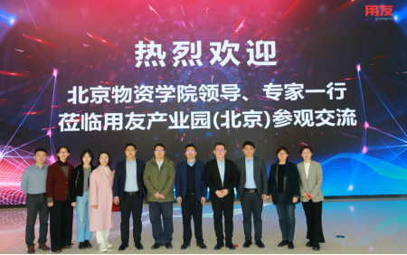 院长姜旭、教学副院长芮嘉明、科研副院长刘若阳、供应链管理专业教研室主任张栩凡以及骨干教师陈璐一行前往用友产业园(北京)调研交流并洽谈校企产教融合、数智供应链专业建设等合作事宜。新道科技副总裁贾大明、用友网络数智供应链高级产品总监曾明明、新道科技专业产品部总经理张春旭、北京分公司总经理侯腾飞、专业产品部产品总监连丽、供应链院校产品经理黄宝珠、供应链校外产品经理隋校昱、北京分公司高级教育规划顾问金鑫、高级校企合作经理郑乐媛一行热情接待本次调研。