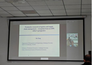 5月12日的培训活动邀请到了瑞典林雪平大学教授、International Journal of Production Economics欧洲区编辑唐讴教授做题为“物流与供应链研究-从IJPE编辑角度的一些心得”的专题报告。华南理工大学二级教授、国家杰青牛保庄教授结合自身的论文构思、设计及写作经历进行了“考虑合同制造商自主品牌的供应链竞合管理”的专题报告。