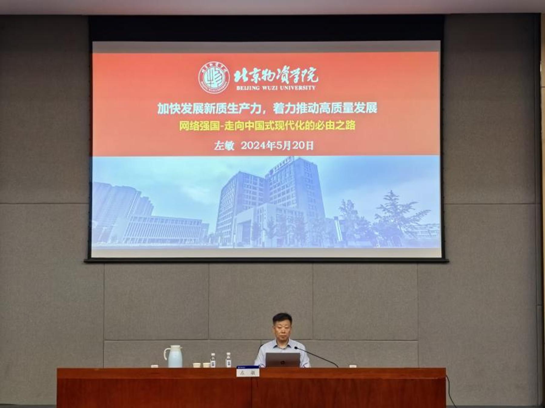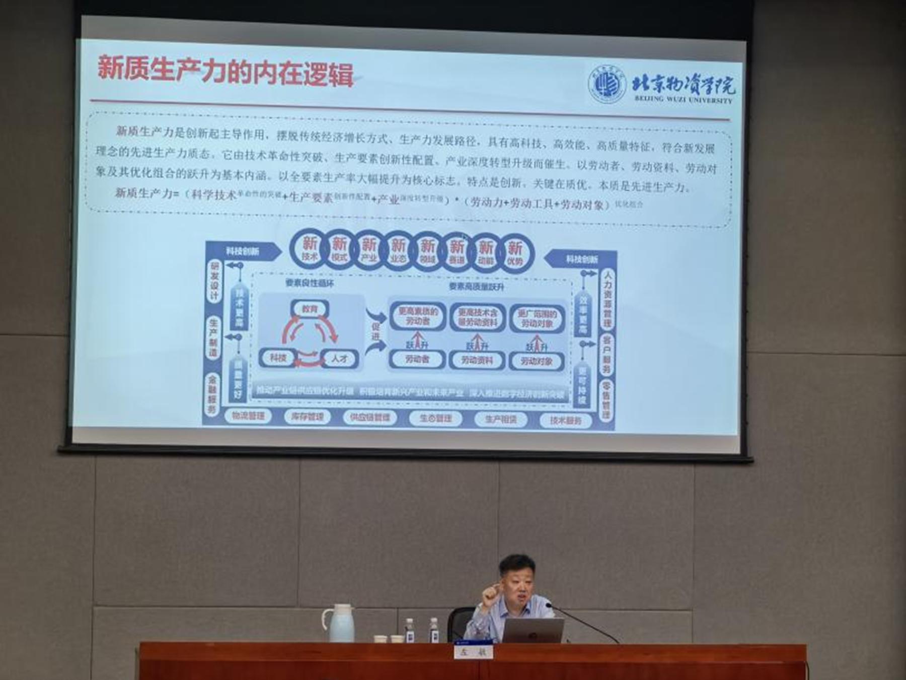 左敏通过回顾物流教育三十年发展历程,指出当前正处于新时代新征程的关键节点。2023年底召开的中央经济工作会议明确提出,要有效降低全社会物流成本。这不仅为高水平建设现代物流体系、推动高质量发展指明了方向,也对进一步推动物流业降本增效提出了具体要求。左敏指出,新质生产力由技术革命性突破、生产要素创新性配置、产业深度转型升级催生,内在核心是科技创新。他强调,加快发展新质生产力,着力推动高质量发展要深刻把握科技、人才、创新“三位一体”的逻辑统一,作为以物资流通为特色的我校,使命光荣、责任重大、要有担当。
