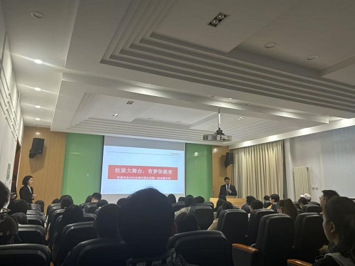101会议室召开了专场招聘宣讲会。分别从公司介绍、人员需求及岗位介绍、校友分享、答疑交流四方面进行宣讲交流,现场气氛活跃,在答疑交流中,毕业生就自己关注的问题与招聘单位充分畅谈,招聘负责人一一做出详细解答。