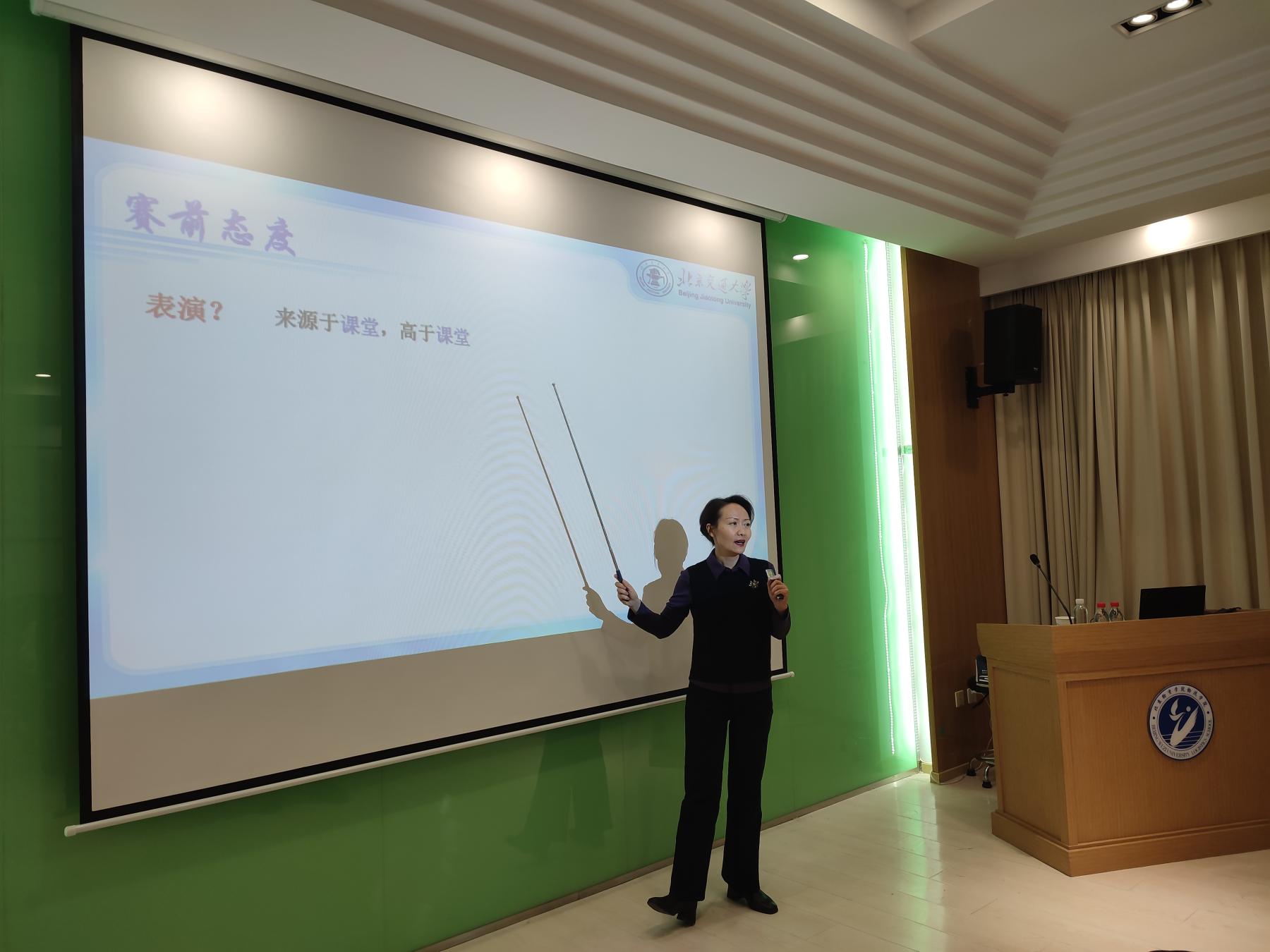 黄教授从赛前态度的建立、内容选择、教学设计、准备环节、教学呈现等方面详细介绍了自己参与北京市教学相关大赛的经验体会,全程一个小时时间采用现场上课的方式,让青年教师深深体会到了作为一名人民教师应该具备的职业素养,让参会老师们感受到了教学的魅力。黄教授的生动授课不仅为参与青教赛的老师提供有效的指导,更是给所有老师如何上好一堂课做出了生动的示范。分享过后黄讲授还针对教师们提出的问题,解答了青年教师目前面临的问题和疑惑。黄教授结合自身2009年参加青教赛的课件,逐一详细讲解课程设计思路与技巧,倾囊相授、干货满满。本次授课让青年教师们理解了大学课程的教育教学理念,帮助大家提升了授课技能,增强了备战青教赛的信心,老师们纷纷表示受益良多。