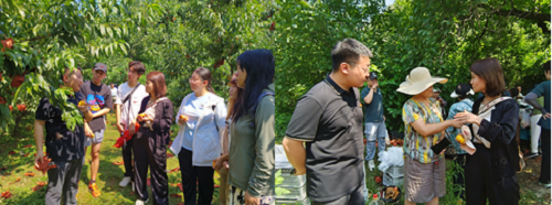 活动中,物院学子亦是志愿者,深入田间地头,把课堂学习和乡村实践紧密结合起来。校友凡皓指出要充分了解梯子峪村目前在农产品种植与销售方面所面临的困境,就要对梯子峪村产业链发展和规模化种植等问题进行讨论,并对此提出合理化建议。于是实践团队在凡皓的带领下,来到我校产学研合作基地,深入果园,了解蟠桃的生长状況,切身体会采摘场景;参观梯子峪村农产品仓储、冷链物流等配套设施,亲身体验蟠桃的分拣打包过程
