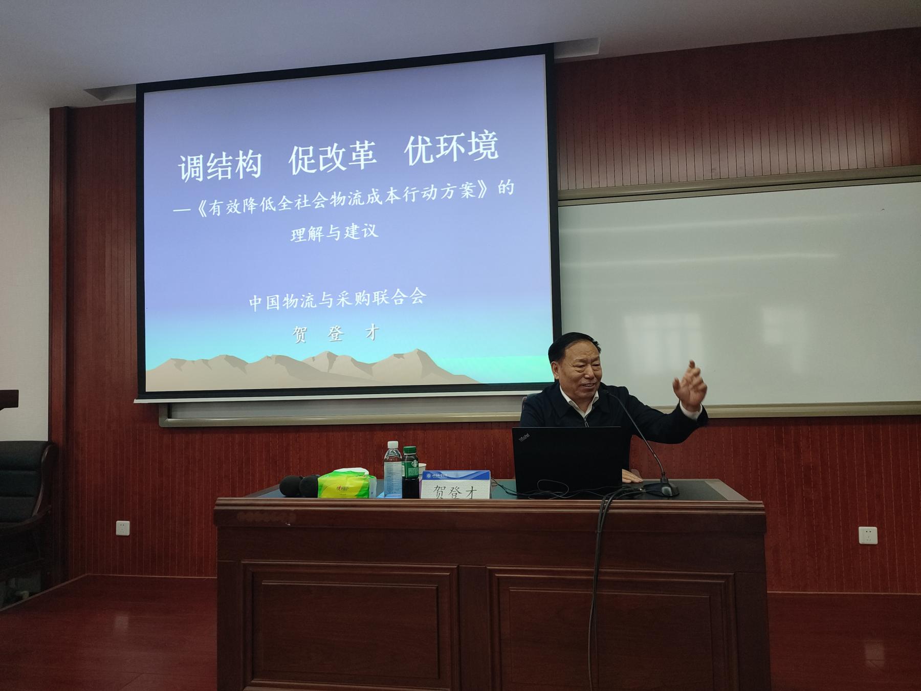 贺登才副会长对《有效降低全社会物流成本行动方案》的二十条主要内容进行了详细解读,分享了自己对二十条核心要义的理解,指出“ 降成本并不是单纯降低物流服务价格,而是通过资源整合、流程优化,转型升级,由价格竞争转向价值共创。其核心是:“三多拓展”“六化转型”即:多业融合、多式联运、多方协同;数字化、智慧化、链式化、网络化、绿色化、国际化。”同时给出了落实《有效降低全社会物流成本行动方案》的措施和建议,强调降低全社会物流成本,应该从全社会、全要素、全链条系统考虑,从经济总量和物流成本双向发力。一是调结构,做大做优经济总量;二是促改革,做小做精物流成本;三是优环境,形成统一高效、竞争有序的物流市场。最后勉励物院师生作为新一代物流人,要争做新时代建设“物流强国”的栋梁之才。