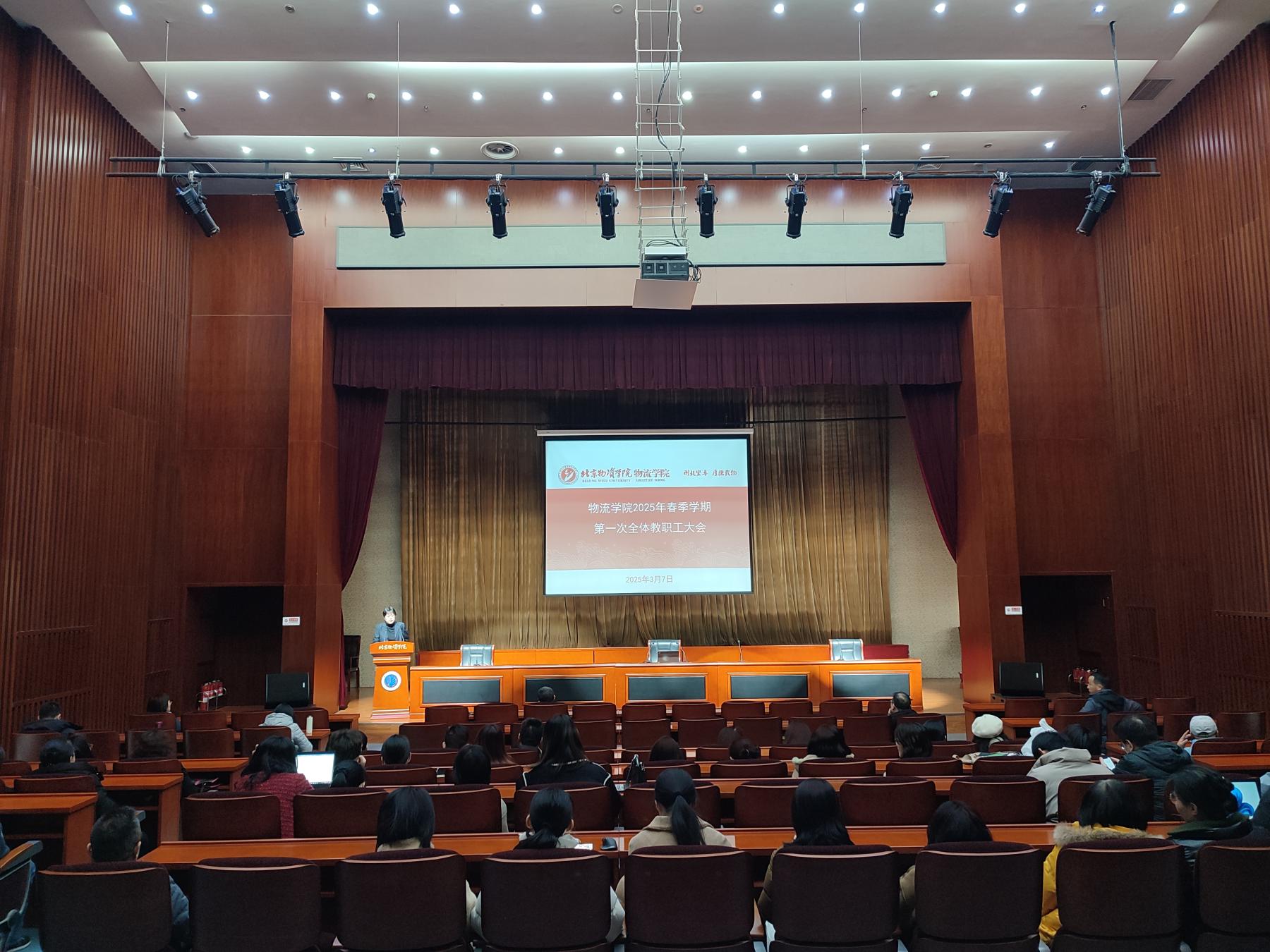 在崇德楼一层报告厅召开全院教职工大会暨2025年春季学期工作部署会。学院领导班子成员、全体教职工参加。会议由学院党委书记郝庆主持。
