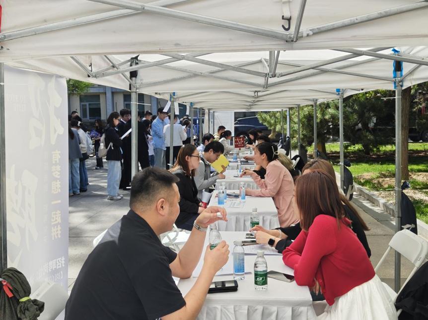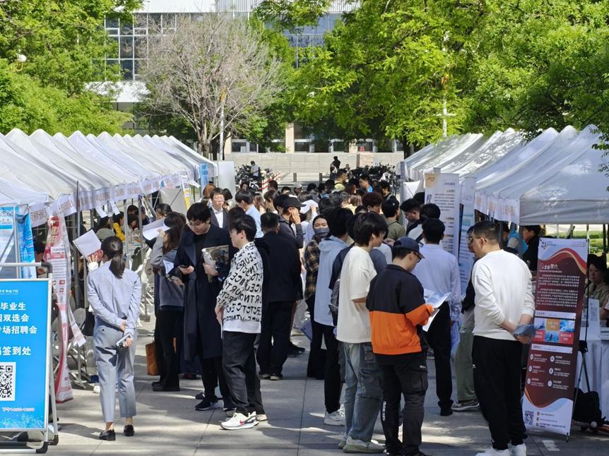 于2025年4月23日下午14:00在主教学楼前广场举办春季校园双选会。学院各学科方向负责人、教研室主任副主任、教工党支部书记、各班主任、各专业辅导员积极到现场进行就业指导,毕业生、在校生共计500余人参加。