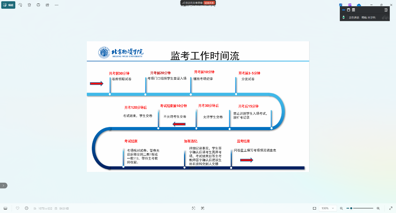 2025年6月25日,为确保本学期期末考试工作的顺利开展,进一步明确监考、主考、阅卷及成绩录入等环节的规范要求,物流工程专业教研室通过腾讯会议的方式召开了期末考试工作专题会议。物流工程专业全体教师参加了此次会议,会议由教研室主任司杨主持。