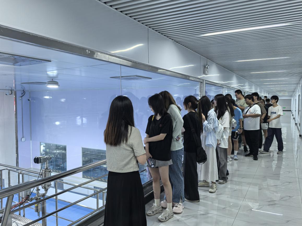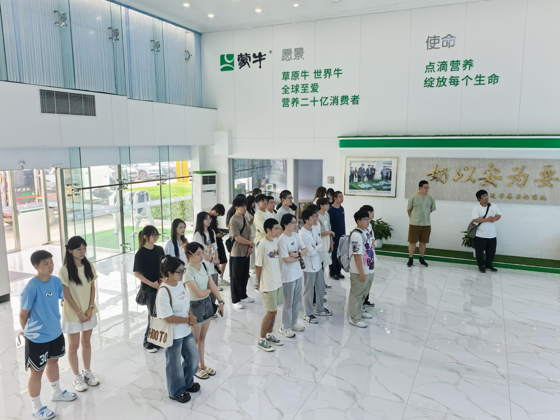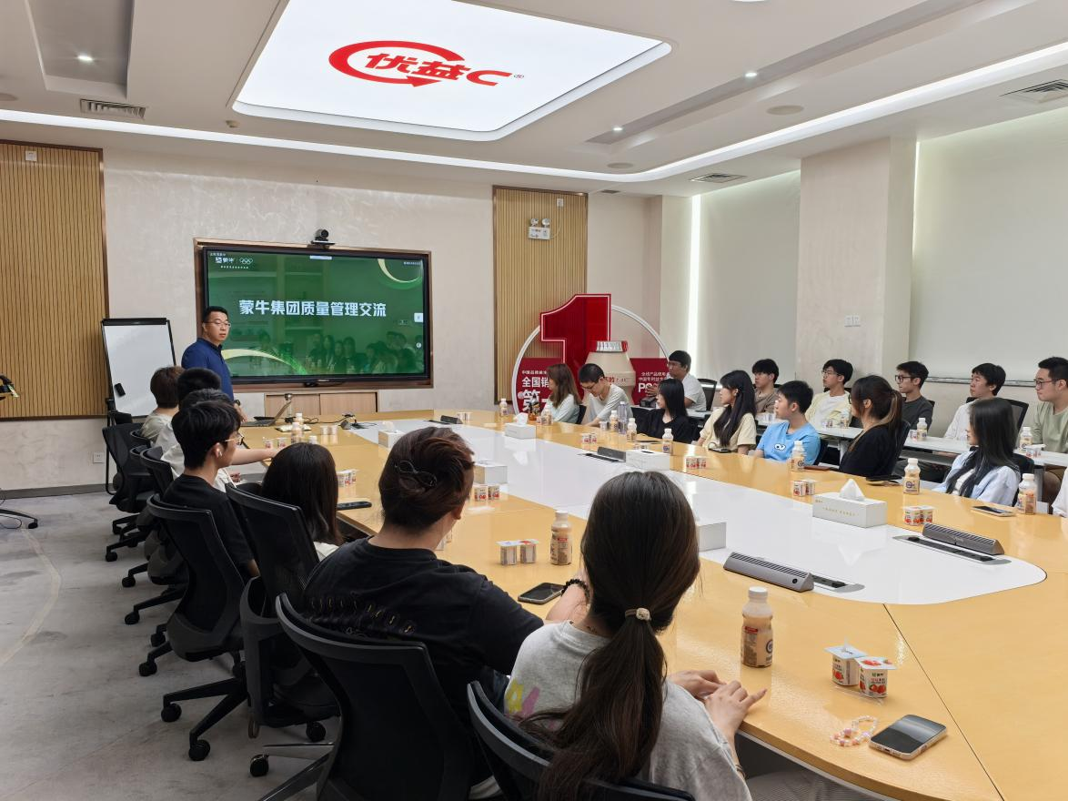 2025年7月4日上午,质量管理工程专业2024级本科生在王国义副教授带领下,到蒙牛开展“质量北京行”公益宣传课程实践。首先,同学们参观了蒙牛北京工厂现代化生产线,通过蒙牛讲解员介绍,详细了解蒙牛集团的发展历史以及蒙牛践行总书记嘱托“奶以安为要”的生动实践。通过对生产线的参观,同学们对蒙牛产品品类及生产工艺流程有了更深的了解,同学们不时驻足观看,被蒙牛工厂现代化的生产线所吸引。