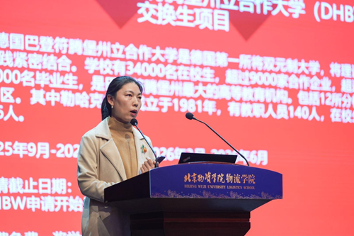会议第二阶段,国际交流与对外合作办公室主任郭琳系统介绍了学院与海外高校、头部企业的合作项目,包括国际论坛、“双元制”班级及企业奖学金政策,鼓励新生拓展全球视野,树立全球竞争力意识。