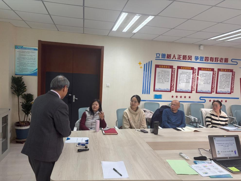2025年12月5日,香港物资采购与供销学会会长吴惠群,与采购管理、供应链管理专业的教师举行专题座谈会,围绕采购与供应链领域的前沿知识、学科发展及教学实践进行了深入分享与充分交流。