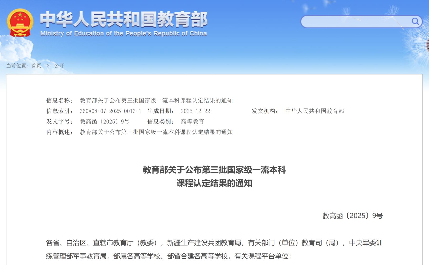 近日,教育部发布《教育部关于公布第三批国家级一流本科课程认定结果的通知》(教高函〔2025〕9号),尤物视频