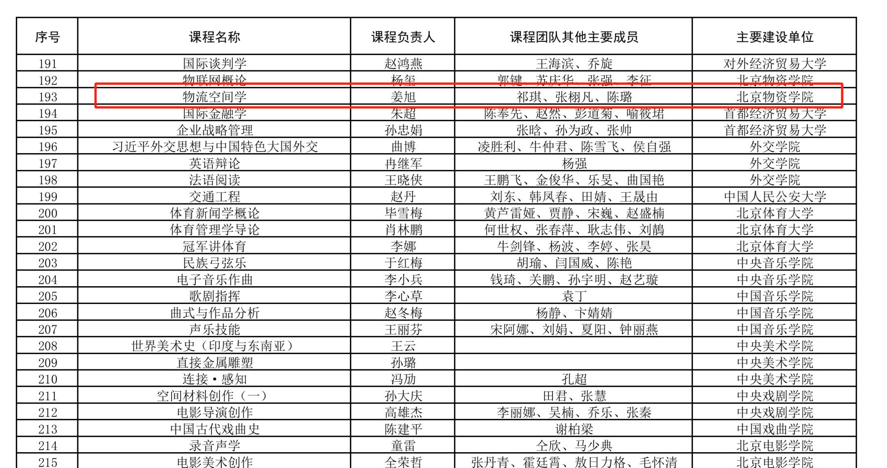 申报的《物流空间学》被认定为第三批国家级一流本科课程。