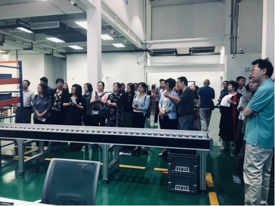 姜旭院长对国家级物流示范中心的整体情况进行了介绍。最后,国家级物流示范中心副主任陈志新副教授陪同来访一行进行了实地参观。大家先后参观了物流规划仿真计算中心实验室、VR/AR实验室、智慧供应链协同创新实验室、云采购实验室、中控室、一层大厅物流多穿系统、托盘式立库+循环搬运系统、流利式分拣系统、提升单元等物流设备,了解了各个实验室的具体功能和使用情况,重点询问了国家级物流示范中心的管理模式、实训课程开发及内容、中心人员配置以及环境维护等情况,陈志新副主任均一一予以解答。李宇红副校长对国家级物流示范中心的高水平建设和设施技术的先进性给予了充分肯定和高度评价,希望今后能继续保持紧密联系,开展深层次的合作。