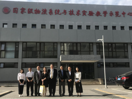 张栩凡老师,陪同罗德岛大学代表们参观“国家级物流系统与技术实验教学示范中心”。姜旭院长详细介绍了包括托盘式立库、循环搬运系统、料箱式立库系统、流利式货架拣选系统、滑块式分拣机等设备、云采购实验室,VR/AR实验室。罗德岛大学代表们亲身体验物流VR/AR技术,并对国际化的物流实验室高度赞赏。同时,罗德岛大学教授们对如何建设利用示范中心提出了自己的设想。