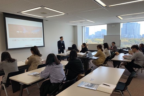 第一届日通班学生赴日本通运集团总部进行参观学习。日本通运集团事业支援本部安全・品质推进部长兼总务部副部长古贺千惠、日本通运集团事业支援本部东亚人力资源中心所长赵经验、日本通运集团事业支援本部东亚人力资源中心副经理曹玲波全程带领参观。