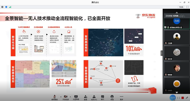 以腾讯会议的方式,举办了线上“物流名家讲堂”(春)系列第六讲,主题为《京东物流的数字化供应链实践和案例》的讲座。