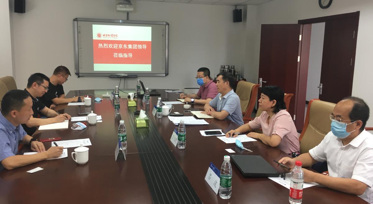 院长姜旭、商学院院长吕波及京东集团副总裁何辉、京东物流子集团教育产教融合总经理赵志刚、京东零售子集团学院院长王顺捷参加会谈。