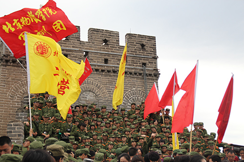 来了,我登上了长城,我是好汉。”之后我们进行了集体吼歌《当那一天来临》 ,铿锵有力的声音在山谷回荡。同时我们还面向长城敬礼,向为修建长城牺牲的人们致敬。