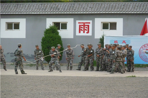 延庆八达岭的夜色很美,皓月当空,星光点点,柔美的光芒映衬着每一张年轻的脸庞,在巨大的黑幕中闪耀着青春的风采,一身戎装,一身的热血豪情。水泥路中央是拔河用的麻绳,中间的红线仿佛划分了楚河汉界,红线的两旁是响亮而又激情的呐喊与口号声,仿佛是征伐的铮铮号角,伴随着军旗随风晃动发出的猎猎响声。
