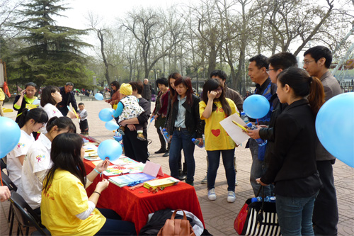 18名志愿者在志愿服务部人员带领下到达位于西海子公园内部的关爱自闭症签名活动现场。每年的4月2日定为“世界自闭症日”,以提高人们对自闭症和相关研究与诊断以及自闭症患者的关注。在这个特殊的日子里尤物视频