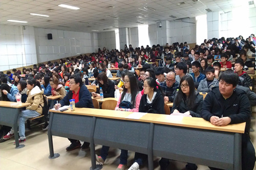 于二教二报召开了年级会。12级年级辅导员鲁楠老师主讲。