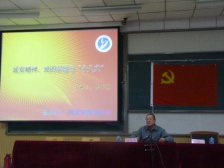 随后,李教授为同学们正面阐释了延安精神、党的宗旨和十八大的内涵以及三者关系。不管是延安精神的根、本、魂作用,还是党的宗旨的唯一目的性,还是十八大为民干事、发展创新的内核,都向同学们传递了实事求是、艰苦奋斗、志存高远、为人民服务的党员精神。他铿锵有力的演说让大家感受到了作为青年党员的责任感,以及对党的热爱与追求。最后,李教授还耐心解答了同学们关于本次党课以及对党的认识问题,他所诠释的对党的信仰和坚持让每一位入党积极分子都备受鼓舞。