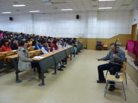 开班仪式后,李世明教授为同学们带来主题为《延安精神、党的宗旨和十八大》的党课,李教授用“拉、讲、答”的讲课形式,生动有趣的向学生们介绍党的思想,频频赢得在课同学的鼓掌喝彩。他用悠扬绵长的二胡乐为同学们献上了14首爱国红歌,每一首红歌都是那么激昂有劲,每一首红歌都彰显着一段中国共产党的发展历程:从中国共产党的建立到军队的诞生,从漫漫长征路到奋斗南泥湾,从浴血奋战的抗日战争到普天同庆的开国大典,从讲着春天的故事走进日新月异的新世纪。每一段艰辛的历程、每一次奋斗的胜利,都离不开党的正确领导。