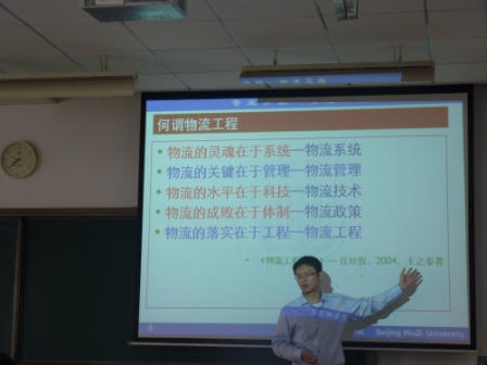 物流工程专业主任梁晨老师向同学们介绍了物流的历史和环境,点拨了同学们将来可能面临的挑战和机遇。梁老师引用王之泰教授的话 “物流的灵魂在于系统,物流的关键在于管理,物流的水平在于科技,物流的成败在于体制,物流的落实在于工程。”梁老师介绍了物流系统的基本要素,并详细讲解了四大物流系统:供应系统、运输系统、接收系统、监控系统,以及其相互之间的联系。此次讲解,梁老师重点提出了学生的能力培养动向,要做个热情,视角开阔,信息流动的人,强调技能型的能力培养,物流系统分析,物流系统设计。而对于尤物视频