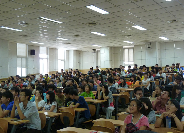 在二教第一报告厅召开2010级年级会,10级辅导员何佳赢主持全会,负责贫困资助工作的吕亚鹏老师参加了此次年级会。