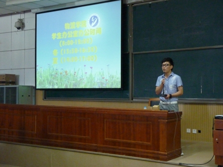 于2012年9月12日下午两点,在二教一号报告厅召开2011级年级会。此次年级会由辅导员吕亚鹏老师主持。