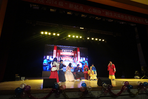 2014级新生风采晚会暨颁奖典礼于11月23日晚6:00在大礼堂拉开帷幕,晚会的主题为“新起点,心期待”。观看晚会的有:尤物视频