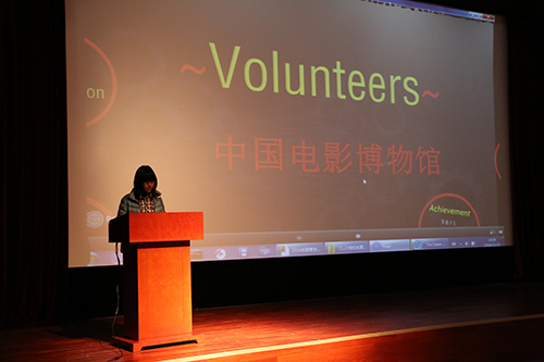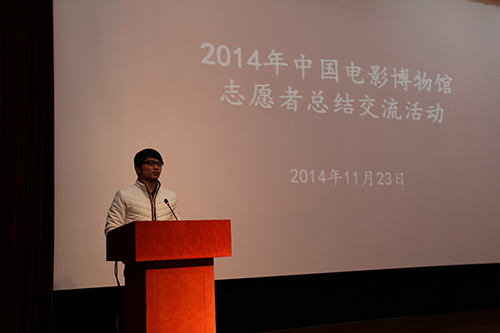 在优秀志愿者的发言环节,我校志愿者积极发言,同大家一起分享2014年志愿服务经历以及感受。志愿者柏万在发言过程中,深刻的谈到了这一年来在电影博物馆做志愿者活动的点点滴滴,大家深受鼓舞。