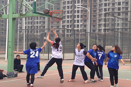 与商学院于10月30日中午12:20在篮球场进行了激烈精彩的“飞凤杯”女子篮球比赛。