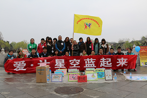 志愿服务部成员的组织下,12名志愿者于4月2日早上七点在大礼堂前集合,前往北海公园参加阳光爱第七届4.2自闭症日宣传活动。