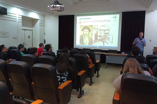 在课堂上,德国交换生们展示德国的文化与特色,介绍德国的地理与风俗。同学们都对这些新鲜的知识表现出很大的兴趣,认真倾听并学习,也会向德国学生们提出自己的问题,提问自己想要了解的更多方面。课堂的后半段内容是自由交流,两国学生可以分组随意交谈,教室内的气氛就与一群关系很好的朋友在愉快畅谈并无差别。