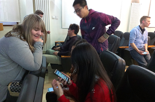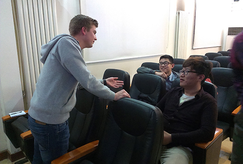 13级的出国交换生们,与来我校的四名德国交换生:Nina,ToBi,Simon,Felix再次相聚在北实101。此项交流活动每周一次,已进行了数周,其目的是使本届的出国交换生们提前与外国人接触,更多地了解其他国家,也提高锻炼英语的口语交流能力。
