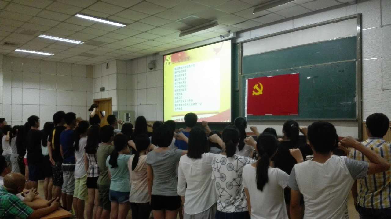 学生党支部于二教一报开展主题为“铿锵誓言•彰显党魂”七一集体宣誓活动。尤物视频