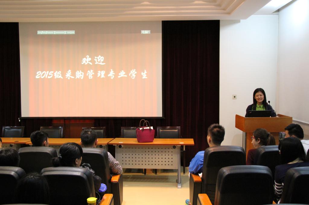 首先杨丽老师为大家做了自我介绍,并讲了一些入学须知和温馨提示,现场气氛十分活跃,同学们纷纷与杨丽老师互动。其次杨丽老师介绍了采购的定义,讲述了采购与购物的本质区别。最后杨丽老师又祝愿2015届的学生们能有更好的一个未来。