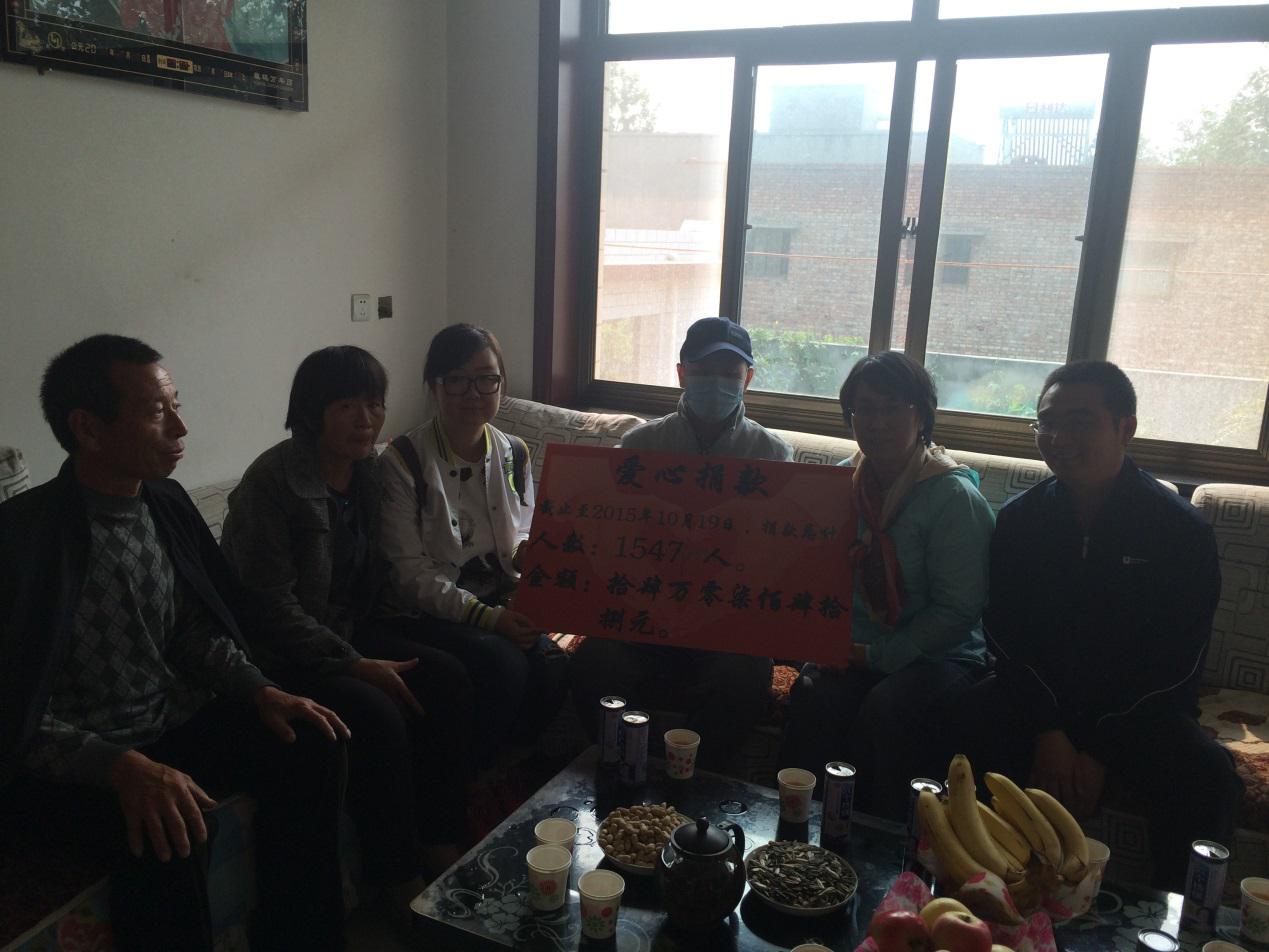 学生党员刘宝辉同学,送去学校师生的深切关怀并捎去了慰问品和募捐善款共计140748元。