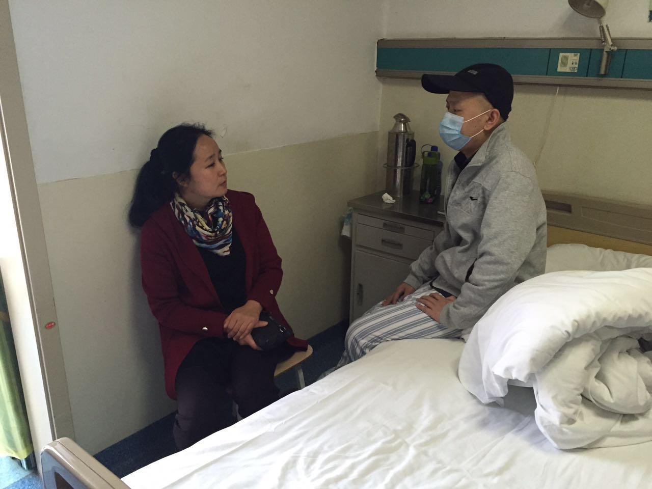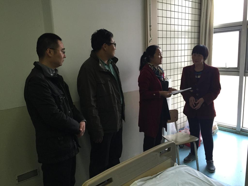 党委副书记毛文富一行到潞河医院看望了身患急性白血病的学生刘宝辉,送去学校的深切关怀并捎去了慰问品和学校发放的学生临时困难补助、困难党员补助。