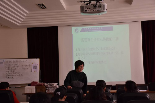 大会第三项,分年级召开班主任会,会议由各年级辅导员主持。会议内容围绕各年级特点依次展开,主要总结了上学期各年级的学习成绩及学生表现情况、新学期工作安排等。