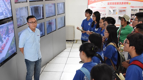 在前往应急控制中心参观的途中,翁主管带领大家经过了物流信息交易中心。他对同学们说,当年物流行业刚刚兴起,一些由几个人组成的小型物流公司入驻传化物流园区,几年的光景物流行业得到了飞速的发展,需求也大大增加。“‘开着奥拓进来,开着奥迪出去’,这就是当时的行业状态。”翁主管打趣的说。